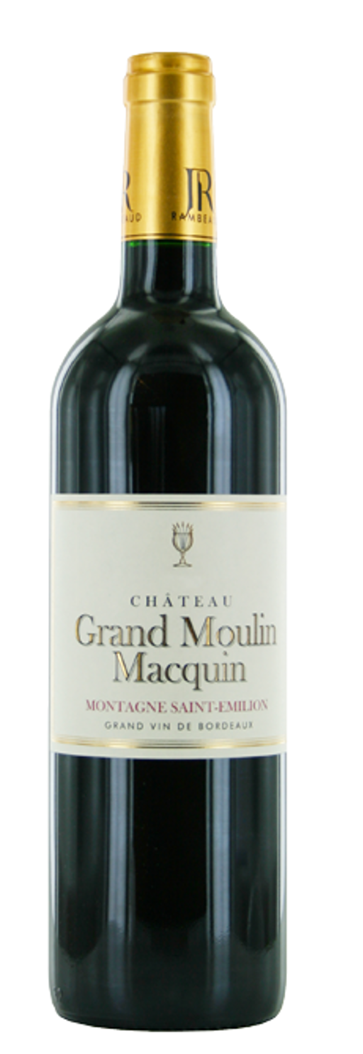 Château Grand Moulin Macquin is eigendom van de familie Rambeaud, ookeigenaar van het beroemde Château Corbin. In 2010 kocht Jacques Rambeaud ditchâteau in het dorpje Saint George, 3 km van Saint-Emilion en 40 km ten oosten vanBordeaux. De wijngaard, waarvan de stokken minimaal 35 jaar oud zijn, ligt op het