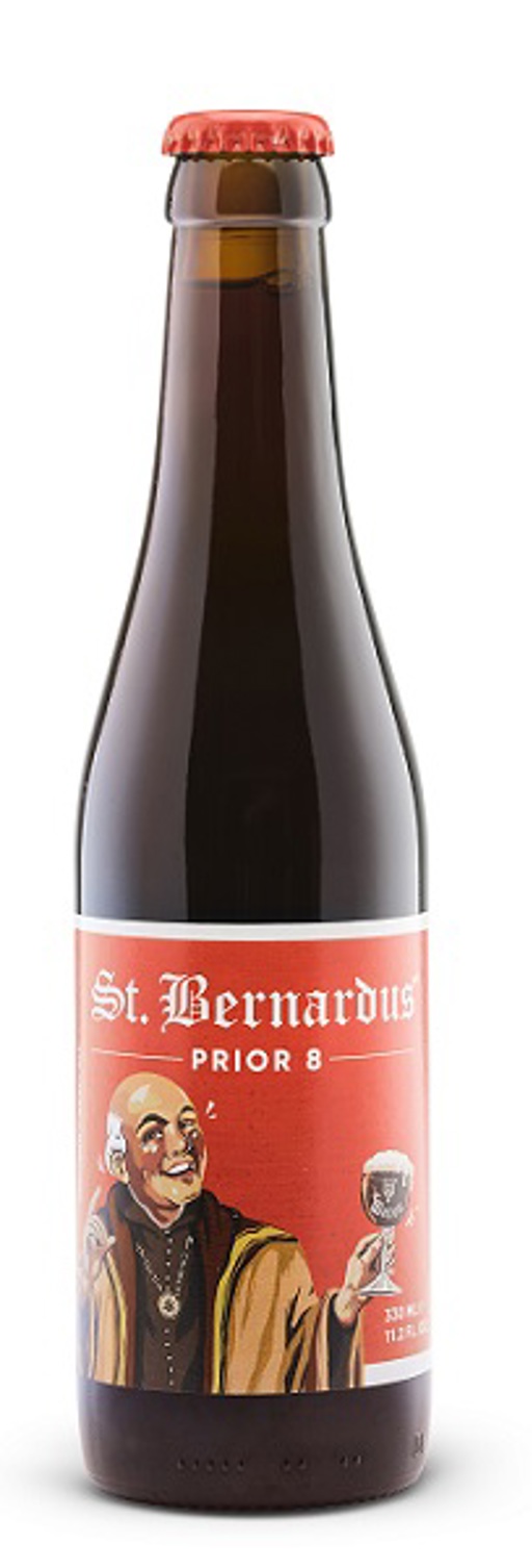 De Prior 8 is een donkerbruin bier en heeft een licht bruine schuimkraag.